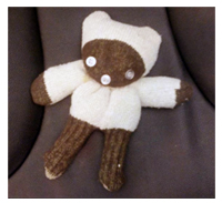 a sock bear with button eyes and nose -- literally and